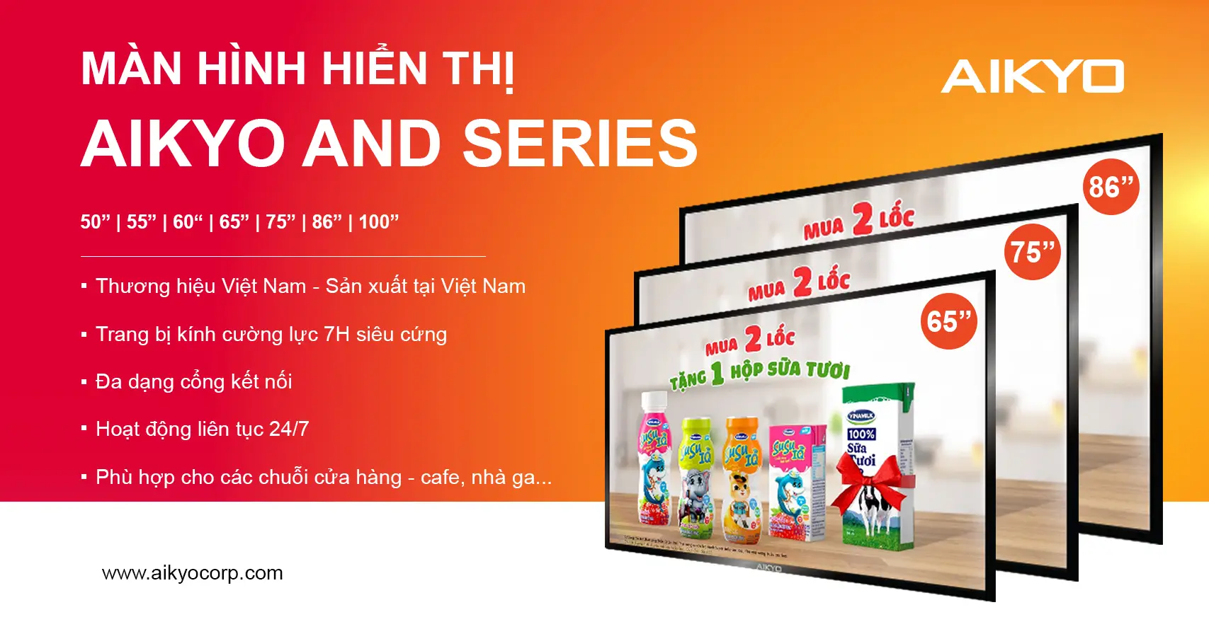 Sản phẩm của AIKYO được sản xuất tại Việt Nam theo tiêu chuẩn Quốc tế ISO 9001; ISO 14001; ISO 27001, QCVN54, QCVN63,…và Quy trình kiểm soát Kaizen, 5S – Nhật Bản đảm bảo việc tiết kiệm điện năng, tuổi thọ màn hình cao. Người sử dụng hoàn toàn có thể tin tưởng vì tính hữu ích của sản phẩm này.